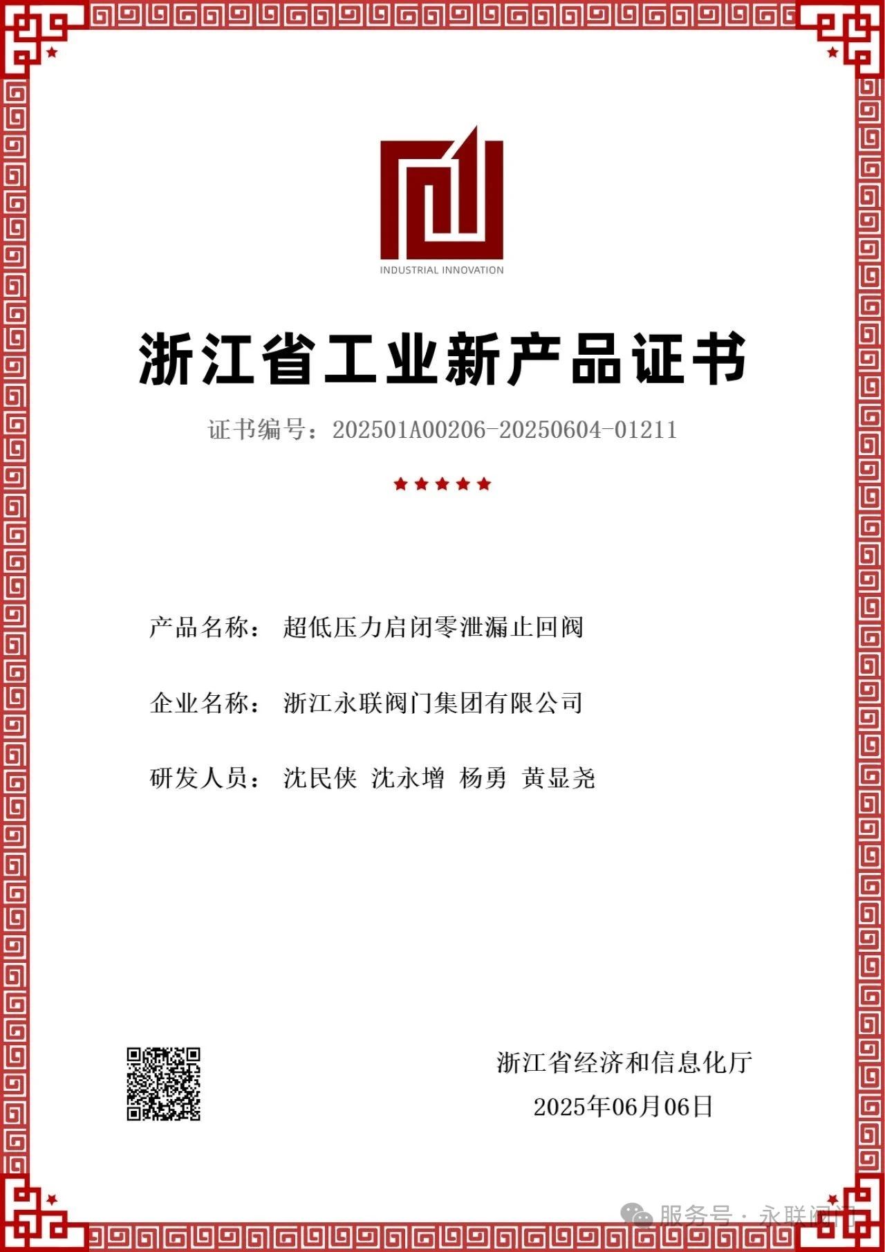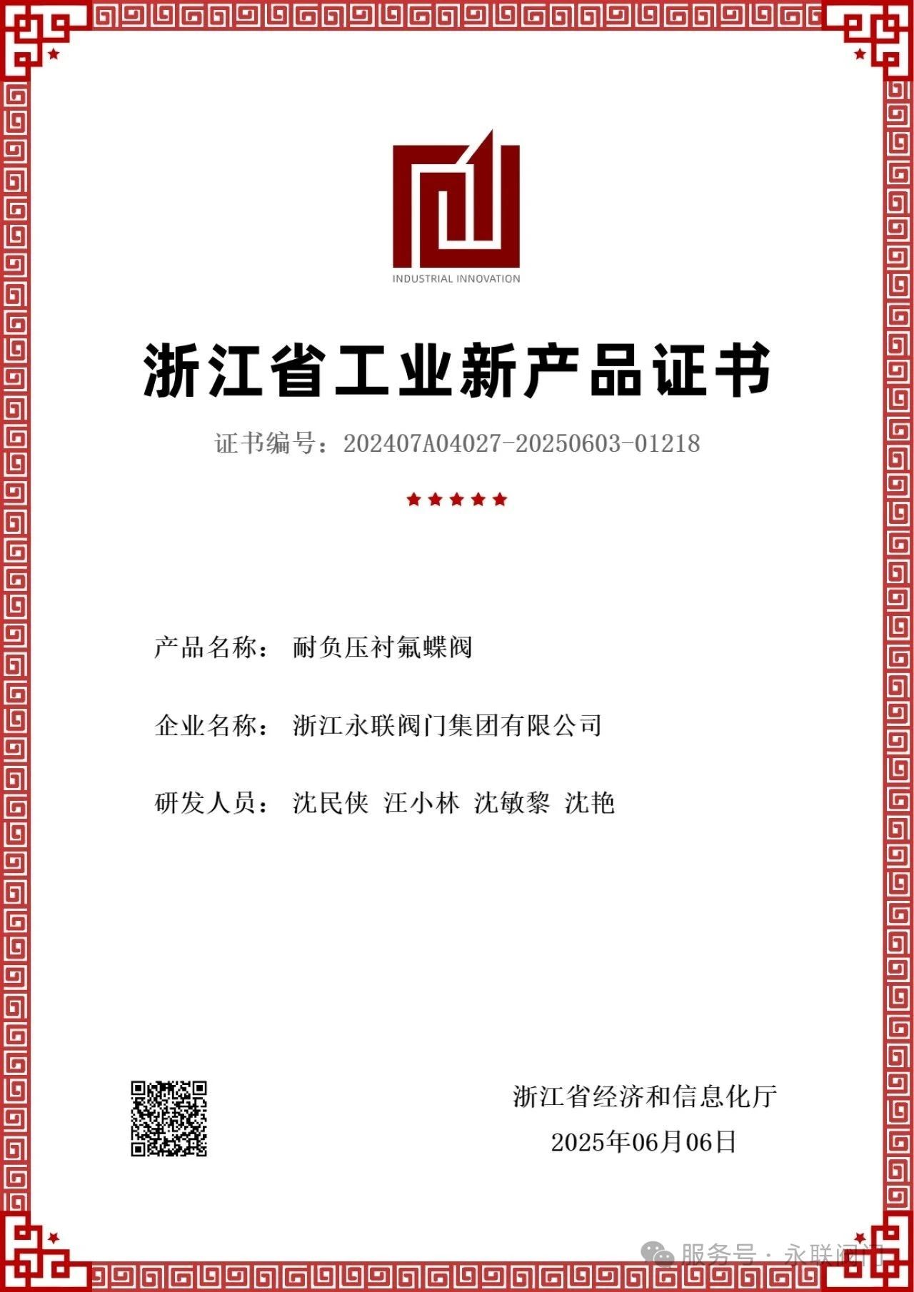 在沈民俠的帶領(lǐng)下取得兩項浙江省省級工業(yè)新產(chǎn)品“超低壓力啟閉零泄露止回閥”和“耐負壓襯氟蝶閥”。